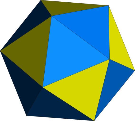 | Keywords: Uniform polyhedron-43-h01.svg en KaleidoTile software Icosahedron hand-colored as alternated truncated octahedron Uniform_polyhedron-43-h01 png 50 2012-01-27 03 41 UTC Uniform_polyhedron-43-h01 png Tomruen at http //en wikipedia org en wikipedia derivative work Hazmat2 <span class signature-talk >talk</span> Original upload log This image is a derivative work of the following images File Uniform_polyhedron-43-h01 png licensed with PD-user-w 2011-10-18T09 03 50Z BotMultichillT 1000x1000 77769 Bytes <nowiki> en wikipedia subst CURRENTYEAR subst CURRENTMONTHNAME subst CURRENTDAY en SVG KaleidoTile software en Icosahe</nowiki> Uploaded with derivativeFX Set of Platonic solids; simple ryb Icosahedron |