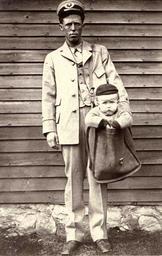 | Keywords: smithsonian institution smithsonianinstitution mailman stork? stork child mailbag child in mailbag childinmailbag uniform funny cute postal service postalservice mail disgruntled grass siding wood stone foundation goingpostal manbag vintage dipping black white black&white blackwhite bw kid postman special delivery specialdelivery clapboard somebody gets a suprise in the mail somebodygetsasupriseinthemail commons:collection=mail babywearing 1900s man boy baby infant black and white blackandwhite standing bag sack frown dour scared mailing children mailingchildren captionable cap double bebĂȘ post correo servicio postal serviciopostal cartero postino tall man tallman man in hat maninhat clapboard house clapboardhouse stern look sternlook large baby largebaby commons:event=commonground2009 brilliant parcel post parcelpost mailing child mailingchild city letter carrier citylettercarrier mail across the commons mailacrossthecommons national postal museum nationalpostalmuseum take your work day e you are the father! youarethefather outdoor black and white Description: This city letter carrier posed for a humorous photograph with a young boy in his mailbag. After parcel post service was introduced in 1913, at least two children were sent by the service. With stamps attached to their clothing, the children rode with railway and city carriers to their destination. The Postmaster General quickly issued a regulation forbidding the sending of children in the mail after hearing of those examples. Creator/Photographer: Unidentified photographer Medium: Black and white photographic print Culture: American Geography: USA Date: 1900 Collection: U.S. Postal Employees Persistent URL: arago.si.edu/index.asp?con=2&cmd=1&id=194274 Repository: National Postal Museum Accession number: A.2006-22 Description: This city letter carrier posed for a humorous photograph with a young boy in his mailbag. After parcel post service was introduced in 1913, at least two children were sent by the service. With stamps attached to their clothing, the children rode with railway and city carriers to their destination. The Postmaster General quickly issued a regulation forbidding the sending of children in the mail after hearing of those examples. Creator/Photographer: Unidentified photographer Medium: Black and white photographic print Culture: American Geography: USA Date: 1900 Collection: U.S. Postal Employees Persistent URL: arago.si.edu/index.asp?con=2&cmd=1&id=194274 Repository: National Postal Museum Accession number: A.2006-22 |