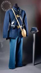 | Keywords: price of freedom priceoffreedom military history militaryhistory uniforms smithsonian probably public domain probablypublicdomain SI Neg. 2002-3852.02. Date: na....Dark blue wool fatigue jacket with a roll down collar, four buttons. Light blue kersey cloth trousers. Dark blue wool forage cap. Should belt with cartridge box and waist belt with percussion cap box and bayonet. Canteen.. At the start of the Civil War enlisted men in the U.S. Army were issued two coats. One was a frock coat which had a standing collar, reached almost to the knees and was closed in the front with nine brass eagle buttons. The frock coat was a dress coat and was piped with the branch-of-service color around the cuffs and collar. The other coat was the fatigue coat. This coat was worn when performing regular duties. According to the 1861 regulations the trousers were to be dark blue just as the coats. This was changed to sky blue on 16 December 1861 and lasted to the end of the war. As with the coats, two hats were issued, a formal black dress hat and the other was the forage cap...Credit: Rich Strauss (Smithsonian Institution) SI Neg. 2002-3852.02. Date: na....Dark blue wool fatigue jacket with a roll down collar, four buttons. Light blue kersey cloth trousers. Dark blue wool forage cap. Should belt with cartridge box and waist belt with percussion cap box and bayonet. Canteen.. At the start of the Civil War enlisted men in the U.S. Army were issued two coats. One was a frock coat which had a standing collar, reached almost to the knees and was closed in the front with nine brass eagle buttons. The frock coat was a dress coat and was piped with the branch-of-service color around the cuffs and collar. The other coat was the fatigue coat. This coat was worn when performing regular duties. According to the 1861 regulations the trousers were to be dark blue just as the coats. This was changed to sky blue on 16 December 1861 and lasted to the end of the war. As with the coats, two hats were issued, a formal black dress hat and the other was the forage cap...Credit: Rich Strauss (Smithsonian Institution) |