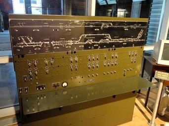 | Keywords: Union Switch & Signal control panel - KC Rail Experience - Kansas City, MO - DSC07837.jpg Interlocking machine exhibit in the KC Rail Experience museum Union Station Kansas City Missouri Union Station Kansas City Missouri USA Photography was allowed in this museum without restriction 2011-11-01 own Daderot cc-zero Uploaded with UploadWizard KC Rail Experience Union Switch and Signal Interlocking machines | ||||