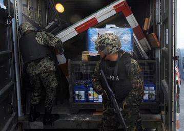 | Keywords: UNITAS Gold DVIDS168327.jpg en A Mexican Navy boarding team searches the German Navy combat support ship Frankfurt am Main for prohibited items during the maritime interdiction operation exercise portion of UNITAS Gold Maritime forces from Argentina Brazil Canada Chile Colombia Ecuador Germany Mexico Peru U S and Uruguay are participating in UNITAS Gold the 50th iteration of the annual multinational maritime exercise UNITAS provides the opportunity to conduct and integrate joint and combined land maritime coast guard and air operations in a realistic training environment The exercise is taking place April 20-May 5 off the coast of Florida 2009-04-26 Alan Gragg https //www dvidshub net/image/168327 090426-N-+++++-187 2009-04-28 06 18 FRANKFURT AM MAIN AT SEA PD-USGov-Military-Navy UNITAS 50-09 Images from DoD uploaded by Fæ |