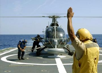 | Keywords: UNITAS Gold DVIDS168735.jpg en 1/Er Miestre Jesus Espinosa Santiago guides a Bolkow BO-105 helicopter to land on the flight deck of the Mexican navy ocean patrol ship ARM Oaxaca Oaxaca is participating in exercise UNITAS Gold an annual multi-national exercise to train maritime forces and promote maritime security and stability in the region Participating nations include Brazil Canada Chile Colombia Ecuador Germany Mexico Peru the United States and Uruguay 2009-04-26 Petty Officer 2nd Class Brandon Shelander https //www dvidshub net/image/168735 090426-N-+++++-451 2009-04-29 18 27 ARM OAXACA PD-USGov-Military-Navy UNITAS 50-09 Images from DoD uploaded by Fæ |
