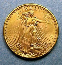 Keywords: legendary coins legendarycoins numismatics money smithsonian probably public domain probablypublicdomain round circle ancient indoor SI Neg. 2005-27332. Date: 9/1/2005...Numismatic legends can be contrived, or they can be accidental-objects that never started as legends but became legendary due to unforeseen circumstances. Perhaps all but a few members of a given mintage were destroyed, or hoarded in unsettled times and never recovered. Under these circumstances, legendary status will be acquired years after the actual creation of the object. .America's numismatic story embraces a number of accidental legends, but none, perhaps, is more fascinating than a double eagle, struck in Denver in 1927. When the 1927 Denver twenty-dollar gold piece was minted, there was absolutely nothing exceptional about the coin, or the circumstances of its creation. .The United States was firmly on the gold standard. Gold was still being mined in Alaska and the West, and the United States branch mints at Denver and San Francisco were expected to turn the yellow metal into gold coins, which they did. That year saw Denver producing 180,000 double eagles-a decline from the figure for previous years, but a perfectly acceptable mintage. .If matters had remained as they were when the coins were struck, they never would have become legendary. But matters did not remain the same. An economic downturn at the end of the 1920s turned into an economic collapse by the beginning of the 1930s; and a new President, Franklin Delano Roosevelt, decided to take the country off the gold standard as one more way of combating the Depression. .Under the circumstances, most gold coins were called in and melted. Provisions were made for exempting collectibles, but few people thought of the recent gold issues as collectibles. So virtually all were turned in, the 1927 Denver double eagles along with the rest. And a once reasonably common twenty-dollar coin from Denver acquired legendary status. At present, this is one of fewer than a dozen that are known..Click here to view the obverse...Credit: Tom Mulvaney (Smithsonian Institution) SI Neg. 2005-27332. Date: 9/1/2005...Numismatic legends can be contrived, or they can be accidental-objects that never started as legends but became legendary due to unforeseen circumstances. Perhaps all but a few members of a given mintage were destroyed, or hoarded in unsettled times and never recovered. Under these circumstances, legendary status will be acquired years after the actual creation of the object. .America's numismatic story embraces a number of accidental legends, but none, perhaps, is more fascinating than a double eagle, struck in Denver in 1927. When the 1927 Denver twenty-dollar gold piece was minted, there was absolutely nothing exceptional about the coin, or the circumstances of its creation. .The United States was firmly on the gold standard. Gold was still being mined in Alaska and the West, and the United States branch mints at Denver and San Francisco were expected to turn the yellow metal into gold coins, which they did. That year saw Denver producing 180,000 double eagles-a decline from the figure for previous years, but a perfectly acceptable mintage. .If matters had remained as they were when the coins were struck, they never would have become legendary. But matters did not remain the same. An economic downturn at the end of the 1920s turned into an economic collapse by the beginning of the 1930s; and a new President, Franklin Delano Roosevelt, decided to take the country off the gold standard as one more way of combating the Depression. .Under the circumstances, most gold coins were called in and melted. Provisions were made for exempting collectibles, but few people thought of the recent gold issues as collectibles. So virtually all were turned in, the 1927 Denver double eagles along with the rest. And a once reasonably common twenty-dollar coin from Denver acquired legendary status. At present, this is one of fewer than a dozen that are known..Click here to view the obverse...Credit: Tom Mulvaney (Smithsonian Institution)