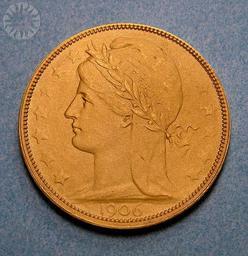 | Keywords: legendary coins legendarycoins numismatics money smithsonian probably public domain probablypublicdomain circle round ceramic indoor ancient SI Neg. 2005-27292. Date: 9/1/2005...In 1905, President Theodore Roosevelt initiated a project to redesign American coinage and commissioned sculptor Augustus Saint-Gaudens to create the new designs. While the two had admirable goals, they committed the unpardonable bureaucratic sin--they had not "gone through channels." The Mint already had an artist, Charles E. Barber, and it would have been his job to redesign coinage if that was what the president wanted. Barber was unhappy with the president's new project, complained to anyone who'd listen, and finally decided to do something about it. He would design his own double eagle, and he would get it done before Saint-Gaudens completed his..Barber was in an unusual hurry. His single surviving pattern double eagle, shown here, is unusual in American numismatics, and one of the least successful artistically. For the obverse, Barber featured a Liberty head with a Phrygian cap and a laurel wreath, inspired by contemporary French artists. For his reverse, he recycled some of his own earlier work. Back in 1891, he had created a pattern half dollar, the obverse of which had featured Liberty with a sword and a Liberty cap on a pole. Liberty was guarding an eagle, the symbol of America. Now, this old design appeared on the reverse of the new coin. Thus Barber's proposal had two Liberties, one on each side. Roosevelt was unimpressed. Saint-Gaudens went on with his work, and Barber continued to fume..Click here to view the obverse...Credit: Tom Mulvaney (Smithsonian Institution) SI Neg. 2005-27292. Date: 9/1/2005...In 1905, President Theodore Roosevelt initiated a project to redesign American coinage and commissioned sculptor Augustus Saint-Gaudens to create the new designs. While the two had admirable goals, they committed the unpardonable bureaucratic sin--they had not "gone through channels." The Mint already had an artist, Charles E. Barber, and it would have been his job to redesign coinage if that was what the president wanted. Barber was unhappy with the president's new project, complained to anyone who'd listen, and finally decided to do something about it. He would design his own double eagle, and he would get it done before Saint-Gaudens completed his..Barber was in an unusual hurry. His single surviving pattern double eagle, shown here, is unusual in American numismatics, and one of the least successful artistically. For the obverse, Barber featured a Liberty head with a Phrygian cap and a laurel wreath, inspired by contemporary French artists. For his reverse, he recycled some of his own earlier work. Back in 1891, he had created a pattern half dollar, the obverse of which had featured Liberty with a sword and a Liberty cap on a pole. Liberty was guarding an eagle, the symbol of America. Now, this old design appeared on the reverse of the new coin. Thus Barber's proposal had two Liberties, one on each side. Roosevelt was unimpressed. Saint-Gaudens went on with his work, and Barber continued to fume..Click here to view the obverse...Credit: Tom Mulvaney (Smithsonian Institution) |