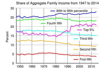 | Keywords: United States Aggregate Family Income Share.svg en Aggregate income for each fifth and top 5 percent for U S families from 1947 to 2014 Data from US Census http //www census gov/hhes/www/income/data/historical/families/ Table F 2 2016-04-19 own Delphi234 other versions current annually Generated with Wikimedia SVG Chart SVG Chart/box cc-zero Income distribution in the United States | ||||