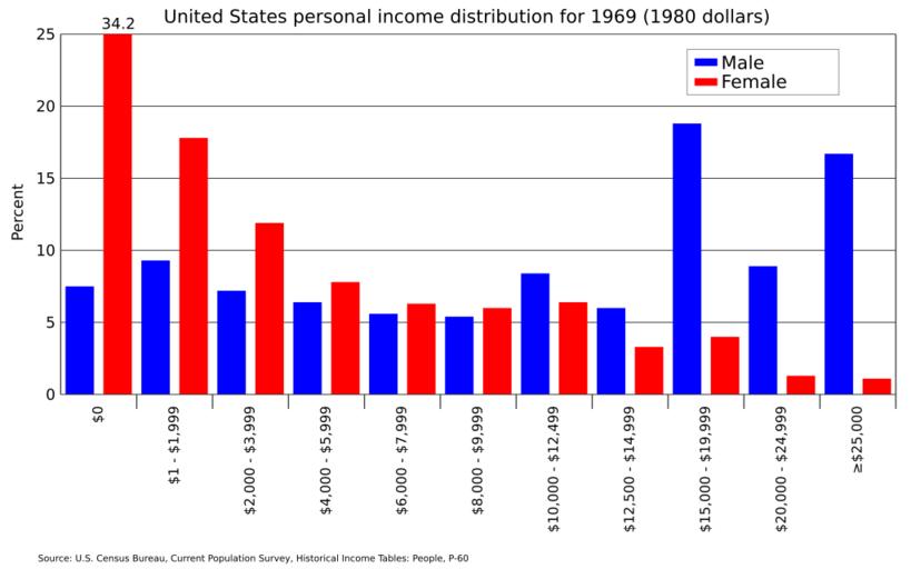 Keywords: United States personal income by sex in 1980 dollars-1969.svg translate yes en Distribution of personal income by sex in the United States in 1969 in 1980 dollars Source U S Census Bureau Current Population Survey Historical Income People https //www2 census gov/prod2/popscan/p60-132 pdf P-60 Table 44 pgs 138-140 2016-05-05 own Delphi234 other versions Note wikitable - 1980 dollars 2014 dollars - 2 000 5 746 - 4 000 11 492 - 6 000 17 238 - 8 000 22 984 - 10 000 28 730 - 12 500 35 913 - 15 000 43 095 - 20 000 57 460 - 25 000 71 825 cc-zero Income distribution in the United States Personal income in the United States |