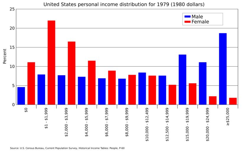Keywords: United States personal income by sex in 1980 dollars-1979.svg translate yes en Distribution of personal income by sex in the United States in 1979 in 1980 dollars Source U S Census Bureau Current Population Survey Historical Income People https //www2 census gov/prod2/popscan/p60-132 pdf P-60 Table 44 pgs 138-140 2016-05-05 own Delphi234 other versions Note wikitable - 1980 dollars 2014 dollars - 2 000 5 746 - 4 000 11 492 - 6 000 17 238 - 8 000 22 984 - 10 000 28 730 - 12 500 35 913 - 15 000 43 095 - 20 000 57 460 - 25 000 71 825 cc-zero Income distribution in the United States Personal income in the United States |