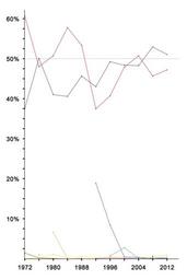 | Keywords: United States presidential election results line graph (Expanded).png Key FFD900 Libertarian Party 1px AAAAAA solid 3C3B6E Democratic Party 1px AAAAAA solid B22234 Republican Party 1px AAAAAA solid 884200 American Independent Party 1px AAAAAA solid 827C1D Eugene J McCarthy 1px AAAAAA solid BDB159 National Unity Party John B Anderson 1px AAAAAA solid 6B47AA Ross Perot/Reform Party of the United States of America 1px AAAAAA solid AB37C8 Constitution Party United States 1px AAAAAA solid 27C851 Greens/Green Party USA/Green Party of the United States 1px AAAAAA solid 000000 Ralph Nader other 1px AAAAAA solid Notes <p>Although John B Anderson ultimately declined to run in 1984 the National Unity Party of Kentucky nevertheless placed him on the ballot <p>Although Ross Perot had not yet formed the Reform Party of the United States of America in 1992 his 1992 run is nevertheless displayed above as a Reform Party run <p>Although the Libertarian Party was on the ballot in all fifty United States plus D C in 2000 the Libertarian Party of Arizona due to a conflict with the national party opted to place L Neil Smith on the ballot in place of the national party's nominee Harry Browne The 5 775 votes received by Smith are included in the party's 2000 total <p>The Green Party that nominated candidates for the presidency in 1996 and 2000 was the Greens/Green Party USA The Green Party that nominated candidates for the presidency ever since has been the Green Party of the United States <p>Although Ron Paul did not run in the general elections of 2008 or 2012 supporters nevertheless got his name on the ballot in some states and got him write-in access in others Ron Paul was also the Libertarian Party nominee in 1988 alexpeak com 22 March 2016 allixpeeke 200px Bar graph 350px Expanded bar graph 175px Line graph Cc-zero Category American Independent Party presidential graphs United States presidential election statistics United States presidential election 1972 United States presidential election 1976 United States presidential election 1980 United States presidential election 1984 United States presidential election 1988 United States presidential election 1992 United States presidential election 1996 United States presidential election 2000 United States presidential election 2004 United States presidential election 2008 Libertarian Party presidential graphs United States Libertarian Party 1972 presidential campaign United States Libertarian Party 1976 presidential campaign United States Libertarian Party 1980 presidential campaign United States Libertarian Party 1984 presidential campaign United States Libertarian Party 1988 presidential campaign United States Libertarian Party 1992 presidential campaign United States Libertarian Party 1996 presidential campaign United States Libertarian Party 2000 presidential campaign United States Libertarian Party 2004 presidential campaign United States Libertarian Party 2008 presidential campaign United States Libertarian Party 2012 presidential campaign United States Democratic Party presidential graphs United States United States Democratic Party 1972 presidential campaign United States Democratic Party 1976 presidential campaign United States Democratic Party 1980 presidential campaign United States Democratic Party 1984 presidential campaign United States Democratic Party 1988 presidential campaign United States Democratic Party 1992 presidential campaign United States Democratic Party 1996 presidential campaign Al Gore presidential campaign 2000 United States Democratic Party 2004 presidential campaign United States Democratic Party 2008 presidential campaign United States Democratic Party 2012 presidential campaign Republican Party presidential graphs United States United States Republican Party 1972 presidential campaign United States Republican Party 1976 presidential campaign United States Republican Party 1980 presidential campaign United States Republican Party 1984 presidential campaign United States Republican Party 1988 presidential campaign United States Republican Party 1992 presidential campaign United States Republican Party 1996 presidential campaign George W Bush presidential campaign 2000 George W Bush presidential campaign 2004 United States Republican Party 2008 presidential campaign United States Republican Party 2012 presidential campaign Green Party of the United States presidential graphs Greens/Green Party USA 1996 presidential campaign Greens/Green Party USA 2000 presidential campaign Green Party of the United States 2004 presidential campaign Green Party of the United States 2008 presidential campaign Green Party of the United States 2012 presidential campaign Constitution Party presidential graphs United States U S Taxpayers Party 1992 presidential campaign U S Taxpayers Party 1996 presidential campaign Constitution Party 2000 presidential campaign United States Constitution Party 2004 presidential campaign United States Constitution Party 2008 presidential campaign United States Constitution Party 2012 presidential campaign United States Ralph Nader graphs Ralph Nader presidential campaign 2008 Reform Party of the United States of America presidential graphs Ross Perot presidential campaign 1992 Reform Party of the United States of America 1996 presidential campaign Reform Party of the United States of America 2000 presidential campaign Reform Party of the United States of America 2004 presidential campaign Reform Party of the United States of America 2008 presidential campaign Reform Party of the United States of America 2012 presidential campaign National Unity Party presidential graphs United States Eugene McCarthy presidential graphs Political line charts Electoral timelines of the United States of America Dot charts Gary Johnson graphs |