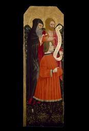 | Keywords: Unknown Italian - Saints Anthony Abbot and John the Baptist with a Donor - Google Art Project.jpg commons date commons medium commons dimensions commons institution Institution Museum of Fine Arts Houston commons location commons references commons object_history commons exhibition_history commons credit_line commons inscriptions commons notes commons accession_number commons source commons permission commons other_versions commons zoom core title Saints Anthony Abbot and John the Baptist with a Donor core creator Unknown Italian core date dateCreated 1483/1487 core format w57 2 x h163 8 cm overall core type Painting core rights The Museum of Fine Arts Houston The Samuel H Kress Collection core relation MFAH core format medium Tempera and gold leaf on wood c-08498e6a customtext medium_extent entire c-08498e6a customtext medium_source MFAH google display_date 1483/1487 google is_artproject TRUE google is_gigapixel FALSE google is_secured TRUE google partner/id 0000000008498e6a google picasa_token KRSVmUpRQZeT1AFu1arV3ATBKjg special url_id _gHs3_yHG8QywA google partner/name The Museum of Fine Arts Houston special partner/name_no_lang The Museum of Fine Arts Houston PD-old-100-1923 Google Art Project works by unknown artist Italy Religious paintings in the Museum of Fine Arts Houston Portraits with patron saints |