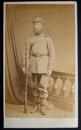 | Keywords: carte de visite cartedevisite british rifle volunteer britishriflevolunteer uniform people photo border I have been told by a Facebook contact that this is likely to be a Rifle Volunteer. I think this is one of two images of the same man, this one from a studio in London, the other from Mirfield. Possibly ca 1870s? I have been told by a Facebook contact that this is likely to be a Rifle Volunteer. I think this is one of two images of the same man, this one from a studio in London, the other from Mirfield. Possibly ca 1870s? |