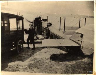 | Keywords: smithsonian institution smithsonianinstitution airmail usps chicago e.j. pearson ejpearson checkerboard air mail field checkerboardairmailfield maywood air mail field maywoodairmailfield loyola university medical center loyolauniversitymedicalcenter national postal museum nationalpostalmuseum mail across the commons mailacrossthecommons Description: Postal employees exchange mail between plane and truck on Chicago's Checkerboard airmail field. Creator/Photographer: E.J. Pearson Medium: Black and white photographic print Culture: American Geography: USA Date: 1921 Collection: U.S. Airmail Service Repository: National Postal Museum Accession number: A.2006-6 Persistent URL: arago.si.edu/index.asp?con=2&cmd=1&id=194258 Description: Postal employees exchange mail between plane and truck on Chicago's Checkerboard airmail field. Creator/Photographer: E.J. Pearson Medium: Black and white photographic print Culture: American Geography: USA Date: 1921 Collection: U.S. Airmail Service Repository: National Postal Museum Accession number: A.2006-6 Persistent URL: arago.si.edu/index.asp?con=2&cmd=1&id=194258 |