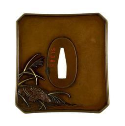 | Keywords: Unno Moritoshi - Tsuba Referring to the Noh Play "Kayoi Komachi" - Walters 51385 - Back.jpg At the lower right of the tsuba a dog sits among reeds with a skull and a skeleton A full moon breaks through clouds at the upper right This scene is a traditional reference to the noh play Kayoi Komachi The Nightly Courting of Komachi Ono no Komachi was a 9th-century poet In the play her spirit and the spirit of her suitor Fukakusa no Shôshô appear to a priest The priest deduces that one of the ghosts is Ono no Komachi because the ghost makes a reference to her poem about pampas grass growing through a skull On the back the straw hat at the lower left is an allusion to a legend about Ariwara no Narihira finding Komachi's skull while he was traveling 1866 Edo copper gold silver cm 8 4 accession number 51 385 14749 Henry Walters Baltimore date and mode of acquisition unknown Walters Art Museum Henry Walters Acquired by Henry Walters Date Keio ni hi-no-e tora nanro/Unno Moritoshi kore o kizamu; Signature Keio ni hi-no-e tora nanro/Unno Moritoshi kore o kizamu; Translation Eighth month in the second year of Keio 1866 the year of the Tiger/This was engraved by Unno Moritoshi place of origin Mito Japan Walters Art Museum license Tosogu Japanese sword fittings in the Walters Art Museum Unno Moritoshi Media contributed by the Walters Art Museum needs category review |