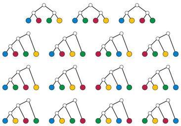 MAKE A MEME View Large Image Unordered binary trees with 4 leaves.svg rooted binary trees with unordered children on a set of four labeled leaves 2013-03-17 13 36 11 own David Eppstein cc-zero Uploaded with UploadWizard Tree structures Color in mathematics