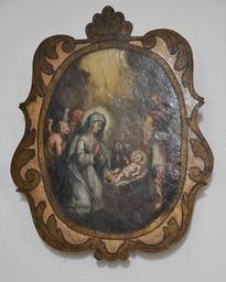 | Keywords: Unteressendorf Rosenkranzgehemnis 03.jpg Täfelchen mit den Rosenkranzgeheimnissen in der Pfarrkirche St Martin Unteressendorf Öl auf Blech wohl von einem Rosenkranzaltar des 17 /18 Jahrhunderts<br /> Nr 3 Jesus den du o Jungfrau in Betlehem geboren hast Lk 2 1 “20 own own photograph 2011-09 Photo Andreas Praefcke Rosenkranzgeheimnisse Pfarrkirche Unteressendorf Photos by User AndreasPraefcke Paintings of the nativity of Jesus Christ | ||||