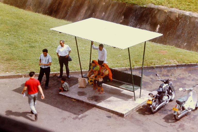| Keywords: indigenous Guna men and women from the San Blas Islands wait for a bus, at Fort Clayton, after a visit to relatives working as kitchen helpers in USASA South Com HQ. Panama, 1965, Kodachrome, Please credit Robert W. McLeod indigenous Guna men and women from the San Blas Islands wait for a bus, at Fort Clayton, after a visit to relatives working as kitchen helpers in USASA South Com HQ. Panama, 1965, Kodachrome, Please credit Robert W. McLeod | ||||