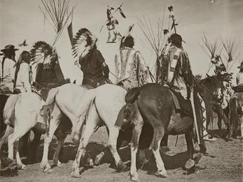 Accession Number: 2003.003.048 museumofphotographicarts Untitled (Rear view of Native Americans riding).jpg 1910 Gelatin silver print Institution Museum of Photographic Arts object history exhibition history credit line Gift of Graham and Susan Nash accession number 2003 003 048 https //www flickr com/photos/mopa1/5710956311/ PD-old-70-1923 Flickr-no known copyright restrictions Photographs by Richard Throssel Native American people in the United States Horse riding War bonnets Tipis |