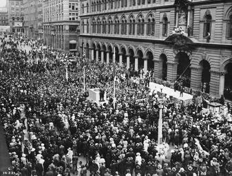 Keywords: archives state records nsw staterecordsnsw newsouthwales blackandwhite martin place martinplace sydney general post office generalpostoffice gpo celebrations cenotaph wwi wwii crowds people spectators world war ii worldwarii world war i worldwari monochrome crowd outdoor black and white After the official ceremony of the unveiling the Cenotaph, 21 February 1929. The Cenotaph was commissioned 8 March 1926, to be completed by Anzac Day 25 April 1929 - see NSW Parliament website for more information. Dated: 22/02/1929 Digital ID: 12685_a007_a00704_8735000005r Rights: www.records.nsw.gov.au/about-us/rights-and-permissions We'd love to hear from you if you use our photos. The cennotaph is the site where many Sydney-based men enlisted into the army for World War 1. See the Wikipedia entry for more information. Many other photos in our collection are available to view and browse on our website using Photo Investigator. After the official ceremony of the unveiling the Cenotaph, 21 February 1929. The Cenotaph was commissioned 8 March 1926, to be completed by Anzac Day 25 April 1929 - see NSW Parliament website for more information. Dated: 22/02/1929 Digital ID: 12685_a007_a00704_8735000005r Rights: www.records.nsw.gov.au/about-us/rights-and-permissions We'd love to hear from you if you use our photos. The cennotaph is the site where many Sydney-based men enlisted into the army for World War 1. See the Wikipedia entry for more information. Many other photos in our collection are available to view and browse on our website using Photo Investigator.