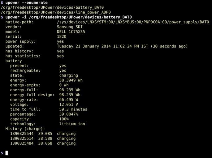 Keywords: Upower command output.svg en Output of the UPower command line client tool upower de Ausgabe des UPower-Kommandozeilen-Client-Werkzeugs upower 2014 own Kulandru mor other versions cc-zero Uploaded with UploadWizard UPower