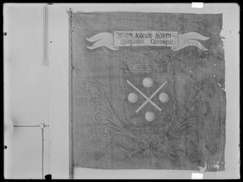 | Keywords: Uppbådsfana Berghems sn Mark - Livrustkammaren - 34300.tif Duk av enkel blå linnelärft 2 vertikala våder hopsydda med fällsöm i mitten <br/>Stad i vertikala ytterkanten Fållen i över- och underkanten lagd åt dukens insida Dekor Målad lika på båda sidor i mitten i gult en med öppen krona krönt sköld nedtill innefattad av två korsade och med långa tofsprydda band Hopknutna palmkvistar I skölden två korsade svärd med vita klingor och gula fästen följda av fyra i vinklarna ställda vita kulor På det vita inskriptionsbandet Mark härad Wapen //Bärgumbs Compagnie Fäst med 1 rad sexuddiga tennlickor på blått band Har ursprungligen fortsatt 250 ned på stången Stång av trä brunmålad Mässingsförlängning Saknar holk och spets original caption uppbådsfana Berghems sn Mark - LRK 17036 1710 wood Färg brun material trä - brass size mm 720 våd size mm 1515 size mm 1400 size mm 15 band size mm 705 mässingsförlängning LRK place of origin original filename LN_A00554_000554 53590 inventory number LRK 17036 34300 CC0 Uppbådsfana Berghems sn Mark - Livrustkammaren - 34300-negative tif <gallery caption Different images of same object > File Uppbådsfana för Berghems socken i Marks härad - Livrustkammaren - 8981 tif </gallery> Ensigns Media contributed by LSH unmatched material Media contributed by LSH dim-with multiple size templates Media contributed by LSH 2013-10 |
