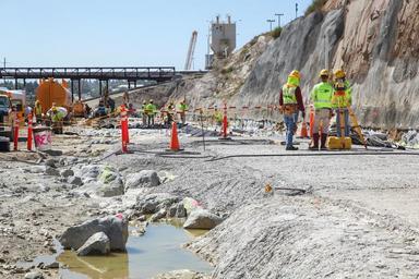 | Keywords: Upper chute surveys, cleaning and drainage systems.jpg en Contractors for the Sacramento District prepare for concrete placements at the Folsom Dam auxiliary spillway project April 29 2015 in Folsom California Preparations include survey work surface cleaning and installation of groundwater drainage systems underneath black fabric in background The U S Army Corps of Engineers Sacramento District together with the U S Bureau of Reclamation and state and local partners is building the spillway to reduce flood risk throughout the Sacramento region 2015-04-29 https //www flickr com/photos/sacramentodistrict/16712868334 U S Army Corps of Engineers Sacramento District http //mdti net/ MDTI other versions USACE-Sacramento District https //flickr com/photos/52057813 N07/16712868334 2016-01-07 02 51 07 United States Government Work PD-USGov Drainage Uploaded with UploadWizard |