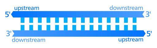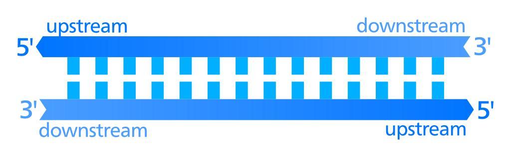 Keywords: Upstream and downstream.svg en Simple illustration of upstream and downstream on a double-stranded piece of DNA 2012-12-15 17 49 18 own Kelvinsong cc-zero Uploaded with UploadWizard Genetics