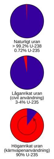 | Keywords: Uranium enrichment proportions sv.svg Pie-graphs showing the relative proportions of uranium-238 blue and uranium-235 red at different levels of enrichment Translated to Swedish by User Knuckles Uranium_enrichment_proportions svg 2008-07-15 14 35 UTC derivative work Knuckles Uranium_enrichment_proportions svg Fastfission Knuckles thumb left 100px original upload log This image is a derivative work of the following images Image Uranium_enrichment_proportions svg licensed with PD-user 2006-09-13T12 55 53Z Fastfission 742x2165 14232 Bytes <nowiki>add an arrow just to make sure it is clear</nowiki> 2006-09-13T12 47 25Z Fastfission 742x2165 12954 Bytes <nowiki>Pie-graphs showing the relative proportions of uranium-238 blue and uranium-235 red at different levels of enrichment Created in Inkscape by User Fastfission Created with Inkscape License subst User Fast</nowiki> Uploaded with derivativeFX Uranium enrichment |