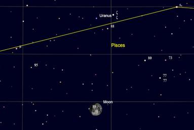 Keywords: The waxing gibbous Moon passes south of Uranus at ~19:25 UT, 9th December 2016. news