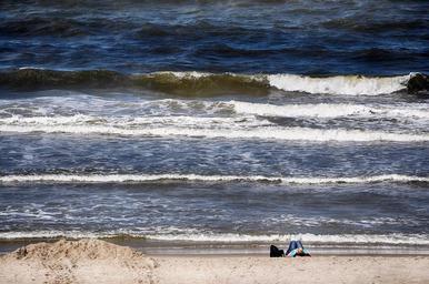Keywords: urlauberin person beach rest mood sea water wave holiday sleep relax woman