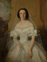 | Keywords: Ürményi Klaudia – Györgyi Giergl Alajos.jpg Artwork Bencsik Györgyné ürményi à rményi Klaudia 1833 “1862 magyar nemeskisasszony menyasszonyi ruhában Mrs György Bencsik née Klaudia à rményi de à rmény 1833 “1862 Hungarian noblewoman as a bride 1859 Size cm 95 126 Oil on canvas Institution Hungarian National Gallery http //www npg hu/index php/component/jcollection/item/2242-uermenyi-claudia Nemzeti Portrétár http //mek oszk hu/01500/01588/html/bakay20 html Bakay Margit Györgyi Giergl Alajos object history credit line accession number 2242 http //www npg hu/images/jcollection/urmenyi_claudia jpg PD-old-100 PD-old-100 à rményi family Paintings by Alajos Györgyi in the Hungarian National Gallery DÃszmagyar 1859 paintings in Hungary Uploaded with UploadWizard Brides in art Portrait paintings of women of Hungary 19th-century oil on canvas paintings in Hungary |