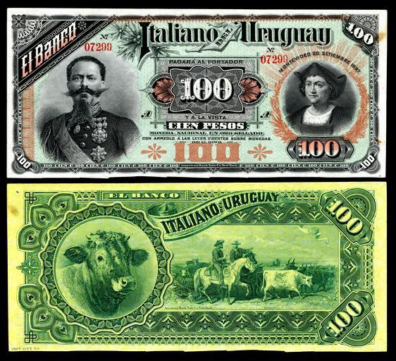 View Original:URU-S214b-Banco Italiano-100 Pesos (1887).jpg (6088x5547)