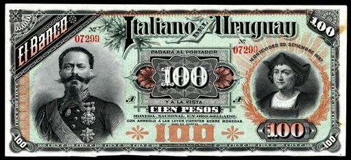 | Keywords: URU-S214b-Banco Italiano-100 Pesos (1887, face only).jpg Montevideo Series date of 20 September 1887 2014-03-11 13 21 30 Image by Godot13 American Banknote Co Institution Smithsonian National Museum of American History Use of this image should give credit to the National Numismatic Collection at the Smithsonian Institution thumb left 2013030510011547 <noinclude> DEFAULTSORT URU-S214b-Banco Italiano-100 Pesos 1887 face only jpg </noinclude> PD-Uruguay-anon PD-anon-1923 self cc-by-sa-4 0 Godot13 National Numismatic Collection <br>National Museum of American History Currency Uploaded with UploadWizard Banknotes of Uruguay NNC Foreign Banknotes 2014 User Godot13 NNC Banknotes scanned by User Godot13 1887 in Uruguay Christopher Columbus on banknotes Umberto I of Italy Banknotes with a face value of 100 |