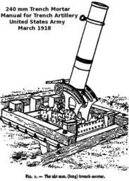 | Keywords: US240mmTrenchMortar100.jpg Diagram of US Army 240 mm 9 45 inch Trench Mortar 1918 at maximum elevation Based on diagram in Manual for Trench Artillery United States Army provisional Part IV 240 mm Trench Mortar Reprint of pamphlet prepared at Headquarters American Expeditionary Force France March 1918 <br>War Plans Division July 1918 <br>War Department document no 820 A E F 519 Office of the Adjutant General <br>http //cgsc cdmhost com/u /p4013coll9 252 2007-09-08 Rcbutcher PD-USGov 240 mm Trench Mortar 1910s technical drawings |