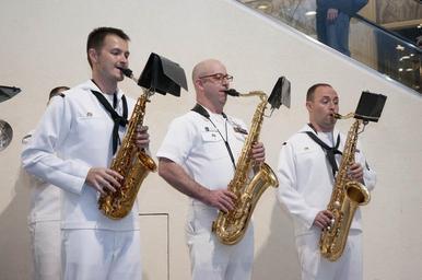 | Keywords: US 7th Fleet band performs in Bangkok 120528-N-TC096-691.jpg en From left Musician Seaman Brandon Kies Chief Musician Nicholas Flores and Musician 2nd Class David Drescher of the U S 7th Fleet band Far East Edition play the saxophone during a performance at the Terminal 21 Mall in Bangkok The 7th Fleet Band is embarked on board the flagship USS Blue Ridge and is currently in Thailand for a port visit 2012-05-28 U S Navy photo by Mass Communication Specialist 3rd Class Colin M Sheridan/Released https //www dvidshub net/image/589034 120528-N-TC096-691 2012-05-27 23 16 BANGKOK TH PD-USGov-Military-Navy Seventh Fleet Band Images from DoD uploaded by Fæ |