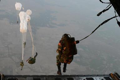 Keywords: soldier Air Force C-130H aircraft drop zone jump parachute