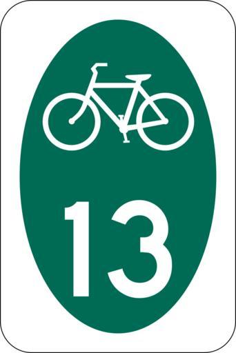 Keywords: US Bike 13 (M1-8).svg User Ltljltlj/Template 300 mm by 450 mm 12 in by 18 in U S Bicycle Route shield based on the specifications of the http //mutcd fhwa dot gov/SHSm/Guide pdf 2004 edition of Standard Highway Signs sign M1-8 Uses the http //www triskele com/fonts/index html Roadgeek fonts United States law does not permit the copyrighting of typeface designs and the fonts are meant to be copies of a U S Government-produced work anyway Colors are from http //mutcd fhwa dot gov/kno-colorspec htm Pantone Green 342 converted to RGB by http //www reeddesign co uk/test/pantone2rgb html The outside border has a width of 1 1/16 in and a color of black so it shows up; in reality signs have no outside border M1-8 - Bicycle Route 0013 13 number M1-8
