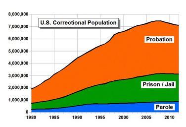 MAKE A MEME View Large Image US correctional population timeline.gif 1980-2013 U S timeline of people under adult correctional supervision Peaked at 7 46 million people on probation or parole or incarcerated in jail or prison in 2008 About 3 2 of the U S adult ...