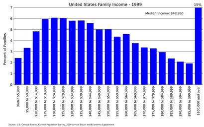 | Keywords: US family income 1999.svg en United States family income distribution for 1999 Data from US Census https //www census gov/data/tables/time-series/demo/income-poverty/cps-finc/finc-01 html FINC-01 2016-06-16 own Delphi234 other versions cc-zero Income distribution in the United States |
