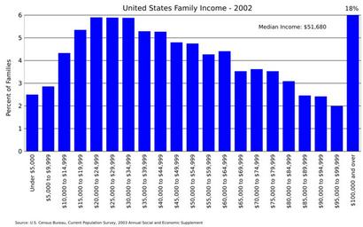 | Keywords: US family income 2002.svg en United States family income distribution for 2002 Data from US Census https //www census gov/data/tables/time-series/demo/income-poverty/cps-finc/finc-01 html FINC-01 2016-06-16 own Delphi234 other versions cc-zero Income distribution in the United States |