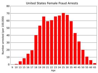 | Keywords: US female arrests for fraud by age.svg translate yes en Arrests in the United States of females for fraud in 2014 by age Data from https //www fbi gov/about-us/cjis/ucr/crime-in-the-u s/2014/crime-in-the-u s -2014/tables/table-40 UCR 2016-05-25 own Delphi234 other versions cc-zero Arrest statistics for the United States SVG bar charts Histograms |