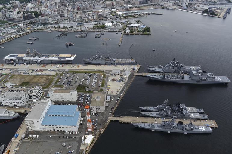 Keywords: US Fleet Activities Sasebo aerial view June 2014.JPG en The U S Navy amphibious assault ship USS Bonhomme Richard LHD-6 left the Austin-class amphibious transport dock ship USS Denver LPD-9 the Whidbey Island-class amphibious dock landing ship USS Germantown LSD-42 and ships assigned to the Japan Maritime Self-Defense Force are moored at Fleet Activities Sasebo Japan Bonhomme Richard was undergoing a maintenance period 2014-06-19 140619-N-BJ178-111 Navy http //www navy mil/view_image asp id 177936 U S Navy photo by Mass Communication Specialist 2nd Class Michael Achterling PD-USGov-Military-Navy United States Fleet Activities Sasebo |