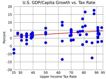 | Keywords: US GDP per Capita Growth vs Personal Income Tax Rate.svg translate yes en http //www bea gov/national/xls/gdplev xls Historicals GDP per capita growth from 1930 to 2015 in http //data bls gov/timeseries/cuur0000sa0 constant dollars vs http //tpcprod urban org/taxfacts/displayafact cfm Docid 623 Topic2id 30 personal income upper income tax rate Hovering mouse over SVG in browser shows year The two lowest growth are 1932 and 1946 The red line is a linear trend line showing that as the upper income tax rate is increased GDP per capita growth increases 2016-10-06 own Delphi234 other versions cc-zero GDP chart Income tax in the United States |