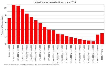 | Keywords: US household income 2014.svg en US household income distribution for 2014 Data from the https //www census gov/data/tables/time-series/demo/income-poverty/cps-hinc/hinc-01 html Annual Social and Economic Supplement of the CPS 2016-03-15 own Delphi234 other versions cc-zero Income distribution in the United States |