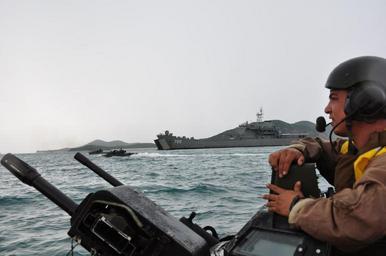 | Keywords: US Marines training with members of the Royal Thai Marines.jpg en SATTAHIP Thailand May 18 2011 Sgt Michael Uybungco from Camp Pendleton Calif helps guide his amphibious assault vehicle toward the beach during the amphibious portion of Cooperation Afloat Readiness and Training CARAT 2011 More than 130 U S Marines spent 48 hours training with members of the Royal Thai Marine Corps 2011-05-18 http //www flickr com/photos/usnavy/5764435853/in/photostream/ U S Navy photo by Lt K Madison Carter PD-USN Uploaded with UploadWizard United States Marine Corps in Thailand Amphibious Assault Vehicle Mk 19 grenade launcher Aboard USS Tortuga LSD-46 CARAT Thailand 2011 Cooperation Afloat Readiness and Training 2011 |