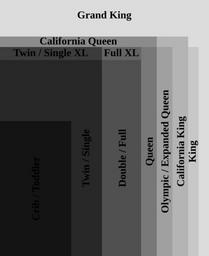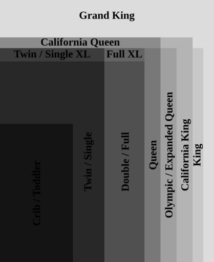 | Keywords: US MattressSizes.svg en SVG version of w image US_MattressSizes jpg Created using Inkscape 0 46 a series of rectangles at 10 opacity with pixel dimensions representing sizes in inches Own work by uploader using US sizes from w Mattress Mattress_dimensions Gringer 2009-01-20 Mattresses |