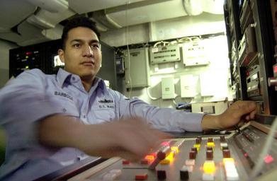 | Keywords: US Navy 011013-N-0685W-001 USS Kitty Hawk (CV 63).jpg en Aboard USS Kitty Hawk CV 63 Oct 13 2001 -- A Personnelman 3rd class gets ready to switch program monitor feeds while standing the SITE TV-watch in the control room aboard the Kitty Hawk The Kitty Hawk has 4 channels of locally-scheduled programming plus an additional 3 channels of satellite programming which air 24 hours-a-day for the crew Kitty Hawk operates out of Yokosuka Japan as America's only permanently forward deployed aircraft carrier U S Navy Photo by Photographer's Mate Airman Jo Wilbourn RELEASED 2001-10-13 011013-N-0685W-001 Navy http //www navy mil/view_image asp id 1499 U S Navy Photo by Photographer's Mate Airman Jo Wilbourn PD-USGov-Military-Navy Military people in 2001 People of the United States in 2001 October 2001 in the United States Sailors at sea People using computers in the 2000s Photographs of sitting men Aboard USS Kitty Hawk CV-63 Personnelman October 2001 photographs Blue clothing male Male soldiers |