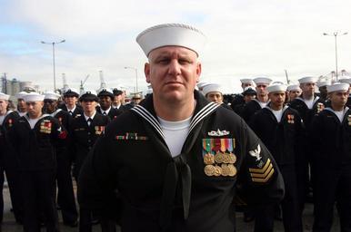| Keywords: US Navy 012409-N-5191L-036 A Sailor assigned to the amphibious transport dock ship USS Green Bay (LPD 20) stands at parade rest awaiting the call to man the rails and bring the ship to life.jpg en LONG BEACH Calif Jan 24 2009 A Sailor assigned to the amphibious transport dock ship USS Green Bay LPD 20 stands at parade rest awaiting the call from ship sponsor Rose Magnus to man the rails and bring the ship to life Green Bay is the fourth ship of the San Antonio-class U S Navy Photo by Mass Communication Specialist 1st Class Jose Lopez Jr /Released 2009-01-24 012409-N-5191L-036 Navy http //www navy mil/view_image asp id 68305 U S Navy Photo by Mass Communication Specialist 1st Class Jose Lopez Jr PD-USGov-Military-Navy Aboard USS Green Bay LPD-20 Manning the rail in the United States Navy Sailor caps of the United States Navy 2009 photographs |