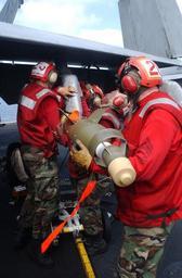 | Keywords: US Navy 020303-N-1587C-083 Loading bombs on aircraft at sea.jpg en 020303-N-1587C-083 At sea aboard USS John C Stennis CVN 74 Mar 3 2002 -- U S Marine ordnance handlers load a 500-pound GBU-12 MK-83 laser guided bomb onto an F/A-18 Hornet strike fighter assigned to the Black Knights of Marine Fighter Attack Squadron Three One Four VMFA-314 John C Stennis and Carrier Air Wing Nine CVW 9 are conducting combat missions over Afghanistan in support of Operation Enduring Freedom U S Navy photo by Photographer's Mate 3rd Class Alta I Cutler RELEASED 2002-03-03 020303-N-1587C-083 JPG Navy http //www navy mil/view_image asp id 920 U S Navy photo by Photographer's Mate 3rd Class Alta I Cutler PD-USGov-Military-Navy USS John C Stennis CVN-74 flight deck GBU-12 War in Afghanistan 2001-present related operations outside of Afghanistan United States Navy in the War in Afghanistan 2001-present Weapons of the War in Afghanistan 2001-present Operation Enduring Freedom in 2002 March 2002 photographs March 2002 in the United States 3 March Military people on duty Male soldiers Men at work Battle Dress Uniform in 2002 Military people in 2002 Personality rights |