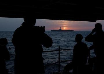 | Keywords: US Navy 020306-N-6492H-519 Sunrise over USS Roosevelt (CVN 71).jpg en 020306-N-6492H-519 At sea aboard USS John F Kennedy CV 67 Mar 6 2002 -- Crew members watch as the sun rises over USS Theodore Roosevelt CVN 71 from the ship s hangar bay The Kennedy and her embarked Carrier Air Wing CVW are relieving the Roosevelt to conduct missions in support of Operation Enduring Freedom U S Navy photo by Photographer s Mate 1st Class Jim Hampshire RELEASED 2002-03-06 020306-N-6492H-519 Navy http //www navy mil/view_image asp id 963 U S Navy photo by Photographer s Mate 1st Class Jim Hampshire PD-USGov-Military-Navy Aboard USS John F Kennedy CV-67 March 2002 photographs |