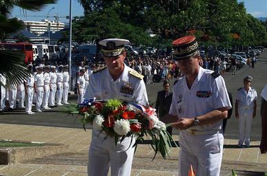 | Keywords: US Navy 020328-N-4055P-004 Vice Adm. John W. Metzger.jpg en Noumea New Caledonia Mar 28 2002 -- Vice Adm James W Metzger Commander U S Naval Forces 7th Fleet and Brigadier General Pierre de Saqui de Sannes Commander French Armed Forces New Caledonia FANC place a wreath at the base of the U S memorial in Noumea A ceremony was held commemorating the 60th anniversary of U S presence in New Caledonia U S Navy photo by Photographer's Mate 1st Class Winston C Pitman RELEASED 2002-03-28 020328-N-4055P-004 Navy http //www navy mil/view_image asp id 1182 U S Navy photo by Photographer's Mate 1st Class Winston C Pitman PD-USGov-Military-Navy Nouméa James W Metzger Brigadier generals March 2002 photographs |