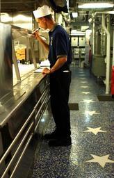 | Keywords: US Navy 020418-N-1110A-504- USS Cole Mess Decks.jpg en Northrop Grumman Ship Systems NGSS Pascagoula MS Apr 18 2002 -- Mess Specialist 2nd Class Eric Oliver makes final menu preparations on the ship s mess decks At his feet are white stars in an area renamed as the Hall of Heroes Each star represents a fallen Sailor and shipmate aboard Cole killed in the October 12 2000 terrorist attack in the port city of Aden Yemen Many of those killed were on the ship s mess decks during the time of the attack The Cole has been in Pascagoula for the past 14 months undergoing repairs and is scheduled to begin a return to her homeport of Norfolk Virginia on April 19 2002 U S Navy photo by Photographer s Mate 1st Class Tina M Ackerman RELEASED 2002-04-18 020418-N-1110A-504 JPG Navy http //www navy mil/view_image asp id 1306 U S Navy photo by Photographer s Mate 1st Class Tina M Ackerman PD-USGov-Military-Navy 18 April 2002 in Mississippi April 2002 photographs April 2002 in the United States Cooking Galley of the USS Cole DDG-67 Images related to the USS Cole bombing Male soldiers Men at work Military people in 2002 Northrop Grumman Shipbuilding Pascagoula Military people on duty Personality rights |